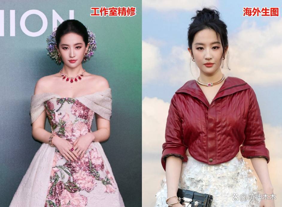 最尴尬的还得是生图和精修图的对比。国内宣传图里,刘亦菲腰部的手边缘被P成了波浪形,一看就是后期用力过猛。可外媒镜头可不讲情面,高清无修图直接暴露了腰线赘肉,连黑色短靴上的掉色痕迹都看得清清楚楚。网友们忍不住吐槽:“这还是那个红毯上的直角肩女神吗?”溜肩加上头身比例失调,再对比两天前国内活动的状态,简直像换了个人。